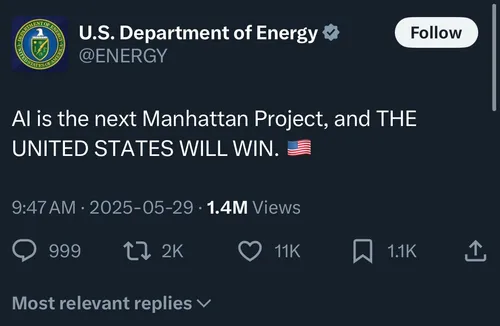 “AI is the next Manhattan Project, and THE UNITED STATES WILL WIN.”