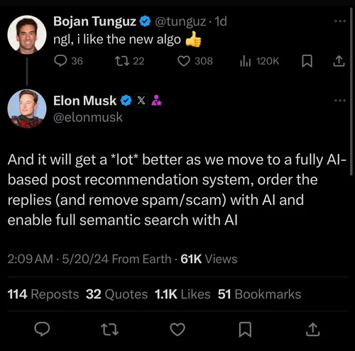 Een van de belangrijkste wijzigingen die Musk aankondigde, betreft de introductie van een volledig AI-gebaseerd postaanbevelingssysteem. Dit nieuwe systeem belooft gebruikers een gepersonaliseerde en verbeterde ervaring door relevante content beter te filteren en aan te bevelen. Door gebruik te maken van machine learning en geavanceerde algoritmen, kan X nu beter voorspellen welke posts en inhoud gebruikers het meest zullen waarderen, wat de algemene betrokkenheid en tevredenheid zal verhogen.