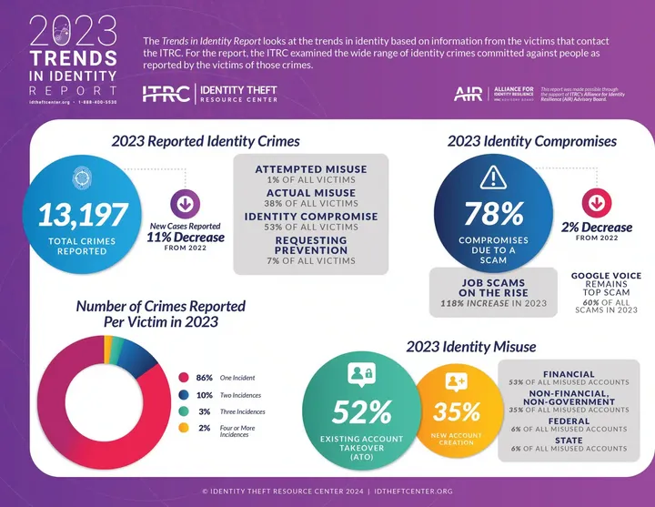 Identiteitsdiefstal blijft een significant probleem in onze moderne digitale samenleving. Het 2023 Trends in Identity Report, uitgegeven door het Identity Theft Resource Center (ITRC), biedt een gedetailleerd inzicht in de huidige trends en verschuivingen binnen deze vorm van criminaliteit.