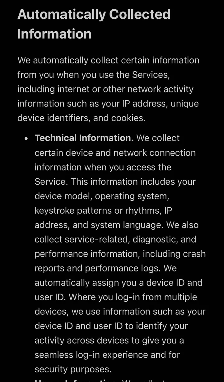 - Technische Informatie: Automatisch verzamelde gegevens zoals apparaatinformatie, IP-adres, toetsaanslagpatronen en systeemtaal.